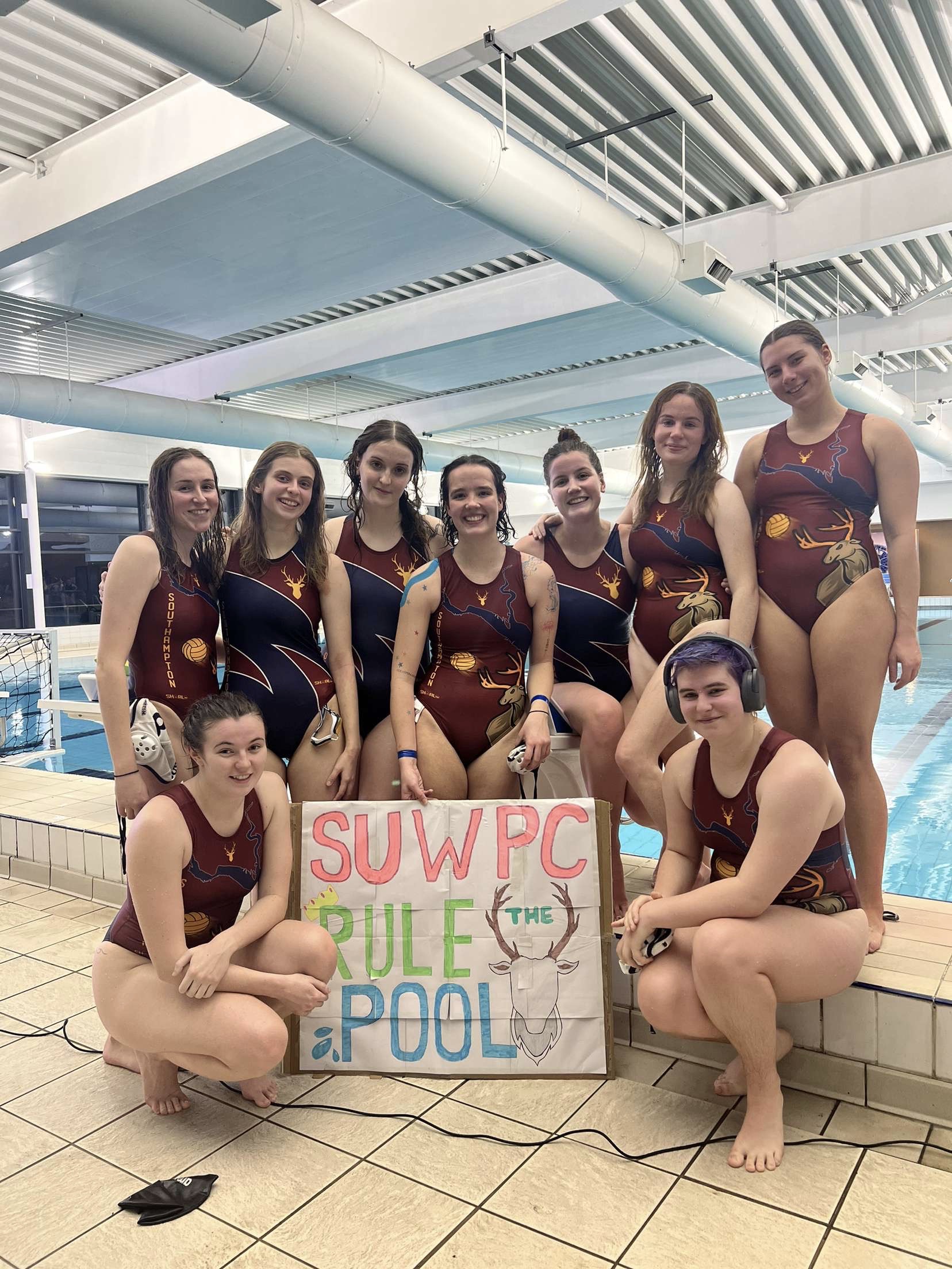 After the delightful news that Kings had finally agreed to our home match (a week prior and at their pool… again..), nine of SUWPC’s finest ladies made their way to Whitgift for a kindly timed match in London on a Saturday evening. Of course, in true ladies team fashion we couldn’t have started without a cheeky transport problem (just wait to you all read the Edinburgh match report), but thankfully our brave volunteer drivers got us there just in time.